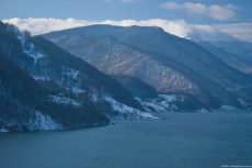 Image of a valley flooded by the Bicaz lake waters
