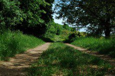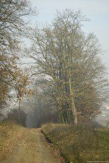Picture of a path, near the ground covered with a yellow layer of leaves